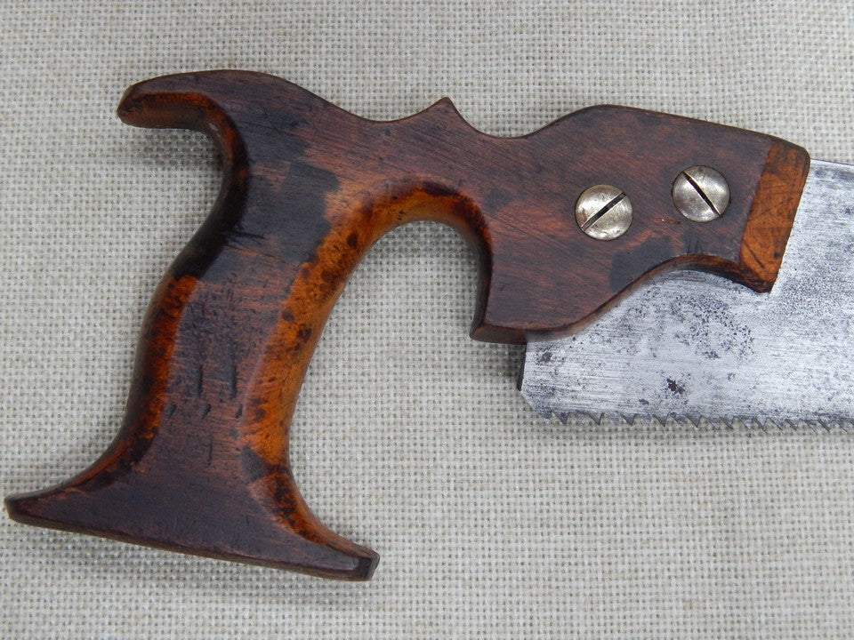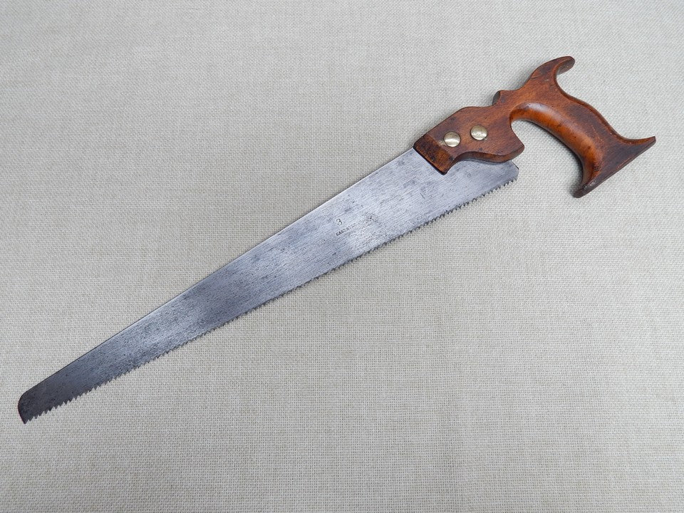 Marked only with "3" and "Cast Steel", this 16 inch long table saw was likely made by Disston for sale under their "Browne" trademark. It is in fine condition with a straight plate and solid (though slighly stained) handle.
